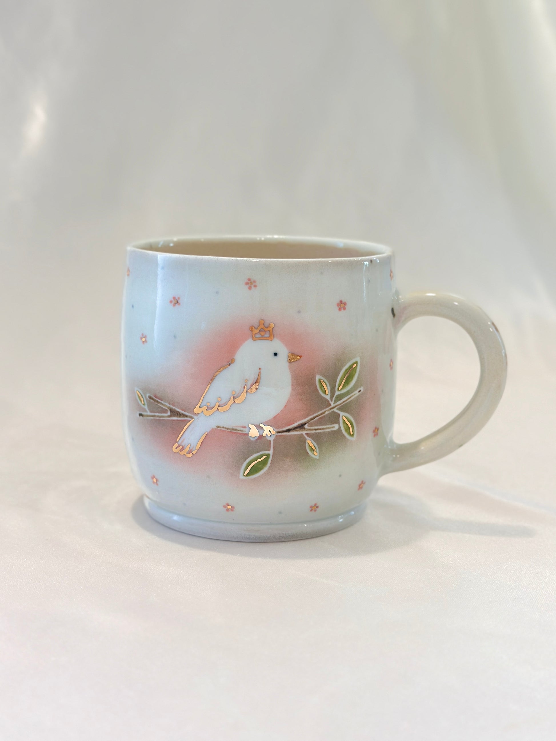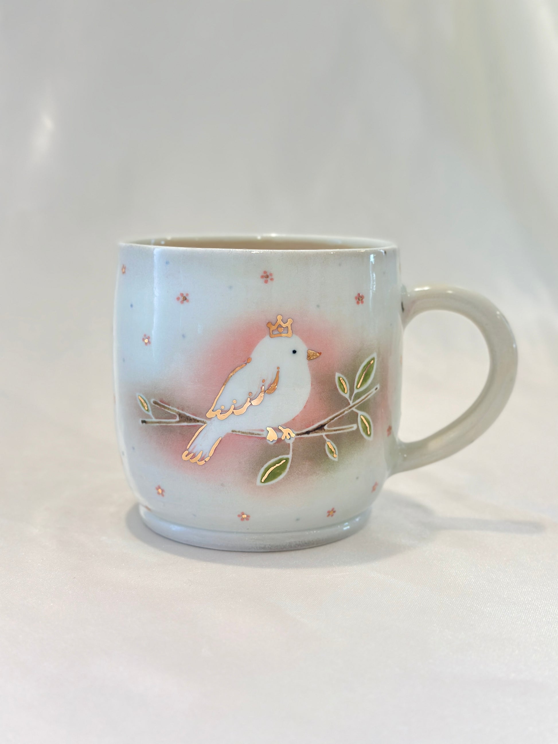 Two celestial birds, one radiant like a goddess, the other strong as a king, grace each side of this luminous mug. A vessel of peace and possibility, made to lift your spirit, sip by sip. Please note: some natural speckles 🕊️