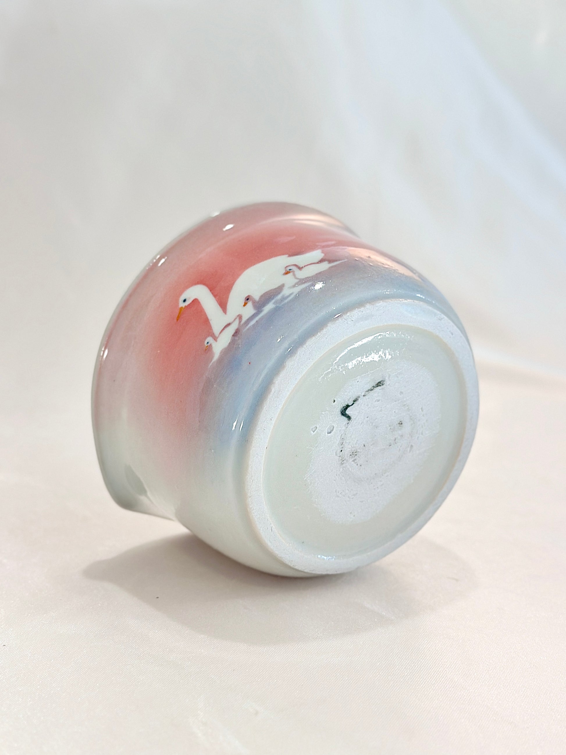 A soft blush sky melts into pale blue, cradling a serene swan leading her little ones across calm water. The scene feels peaceful and maternal, like early morning light before the world fully wakes. This bowl invites you to slow down, breathe deeply, and begin again with softness š¦¢