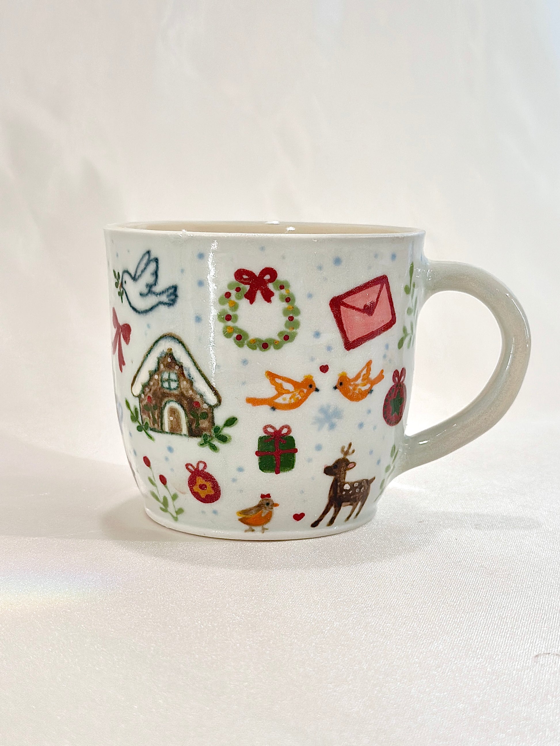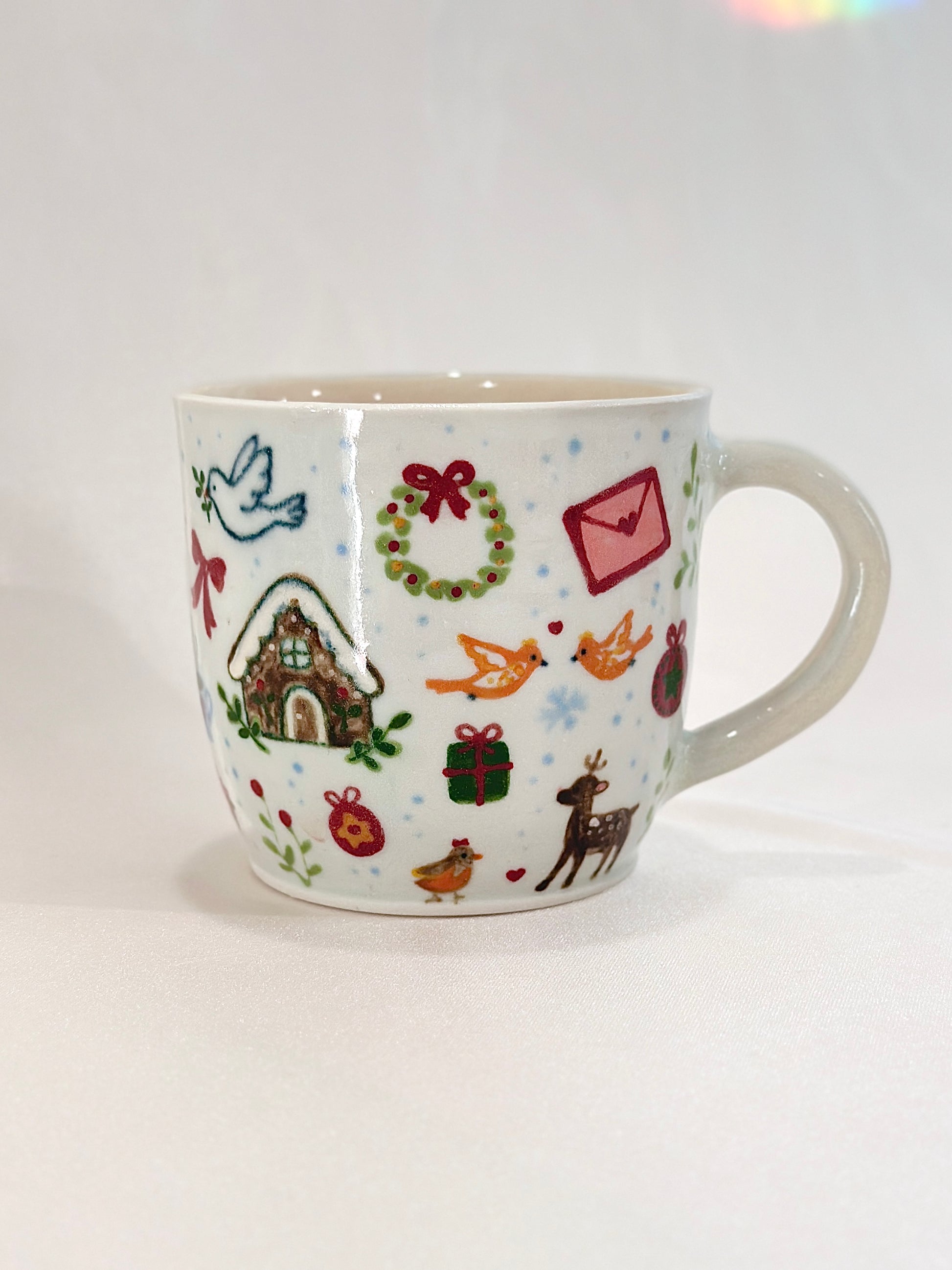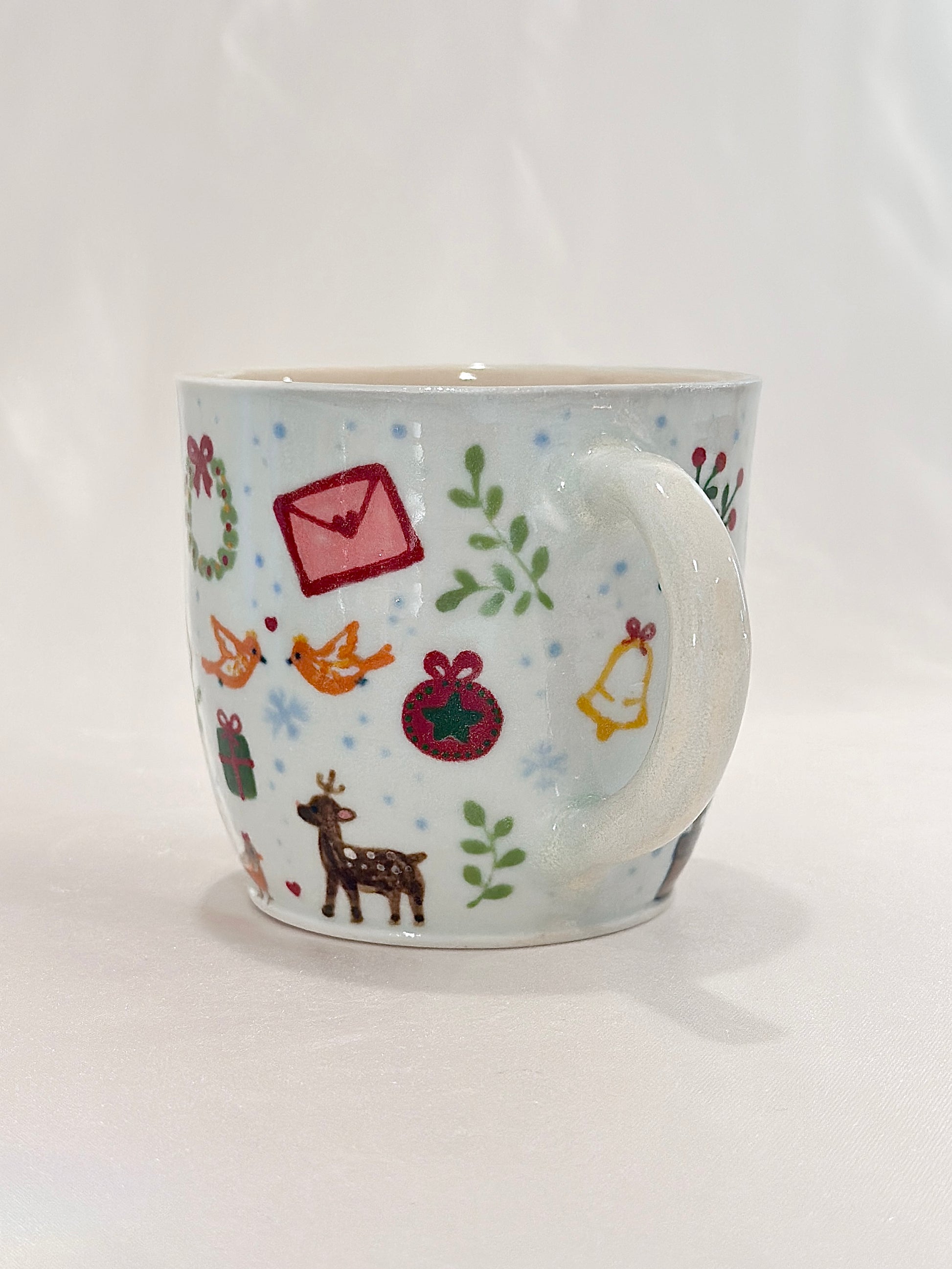 Little forest animals, gifts, wreaths, letters, and festive touches wrap gently around this mug. The artwork feels like stepping into a cozy storybook cottage, filled with warmth and cheer. A sweet companion for the holiday season and the quiet winter days that follow🎄