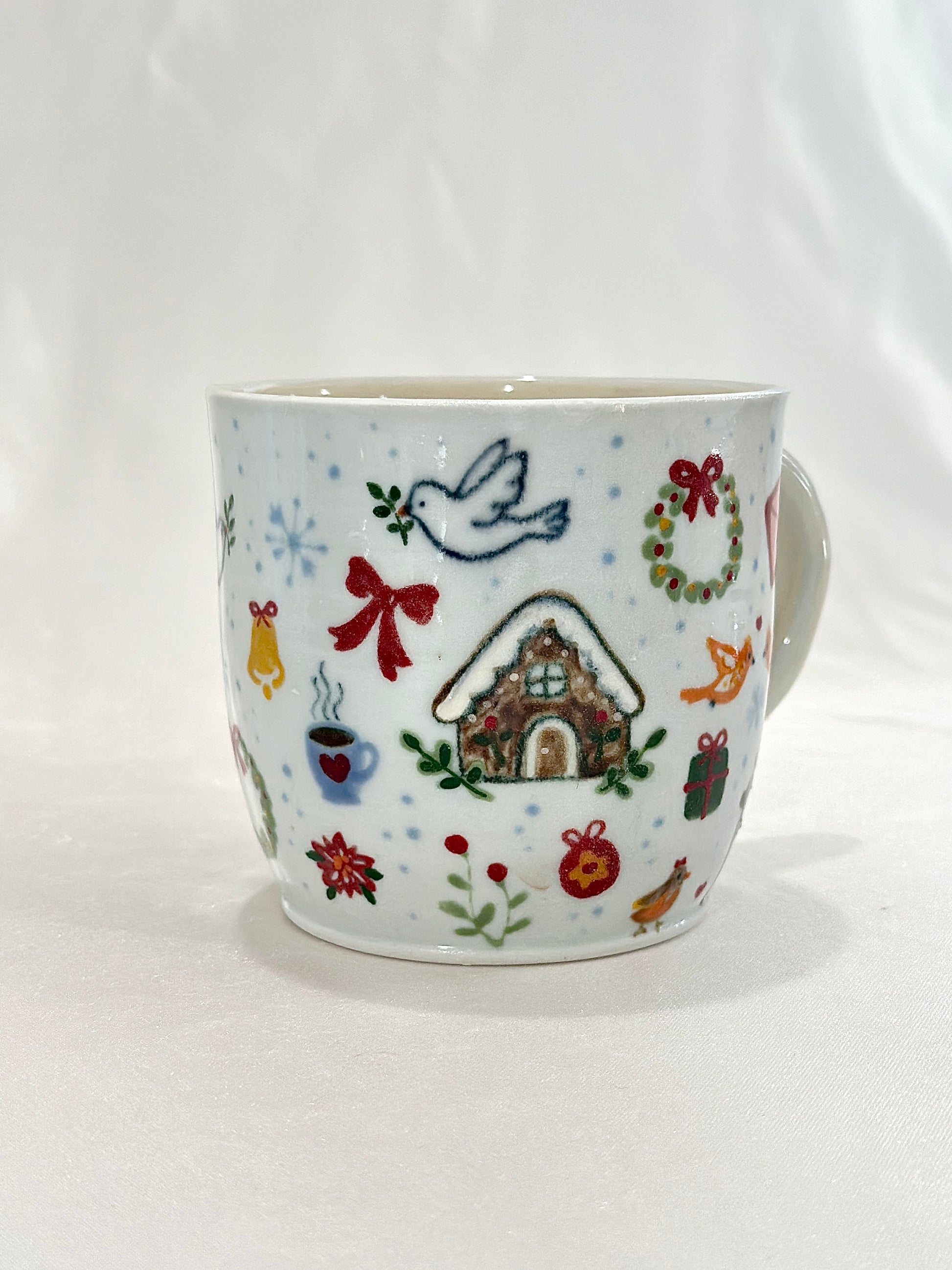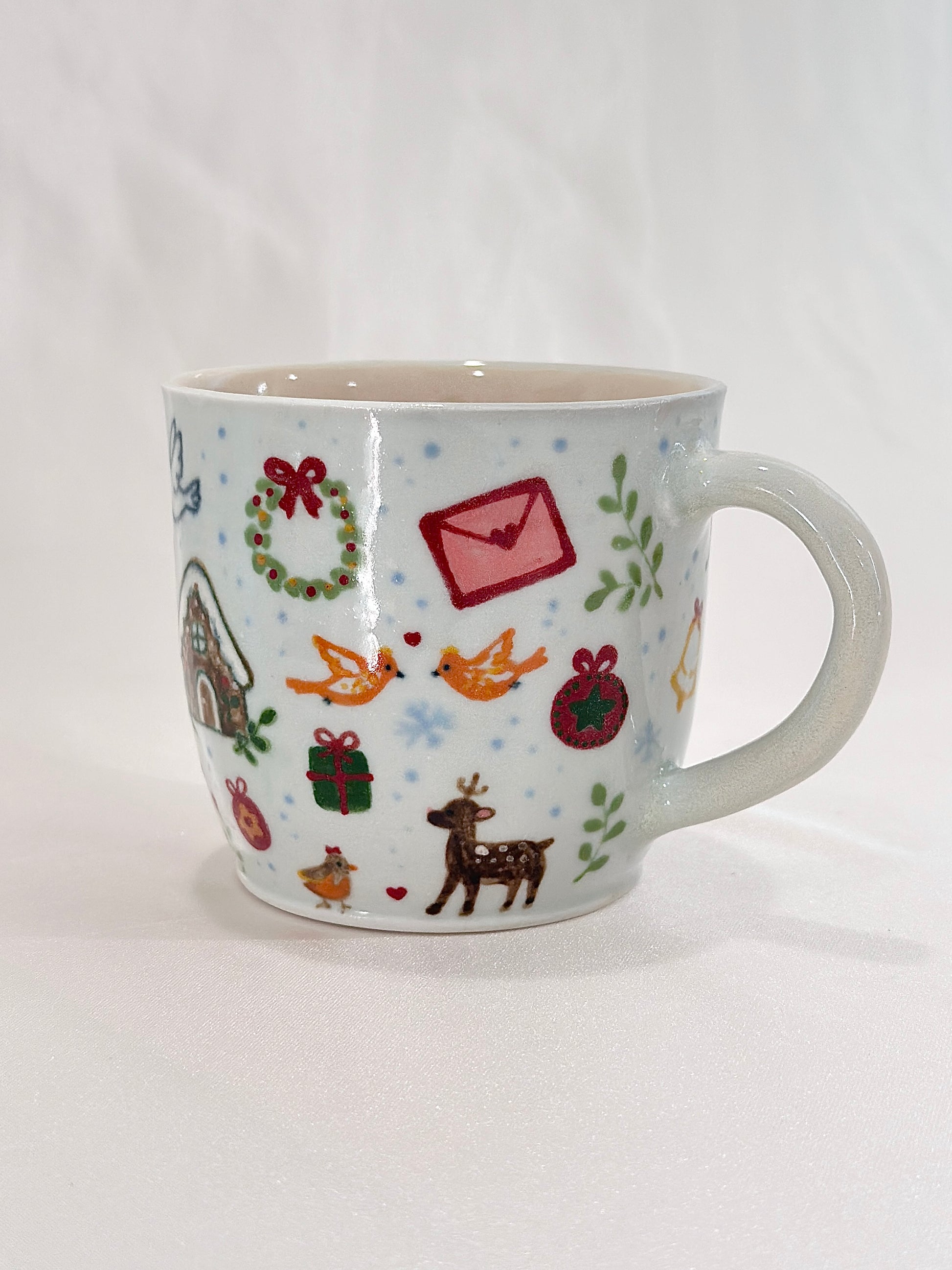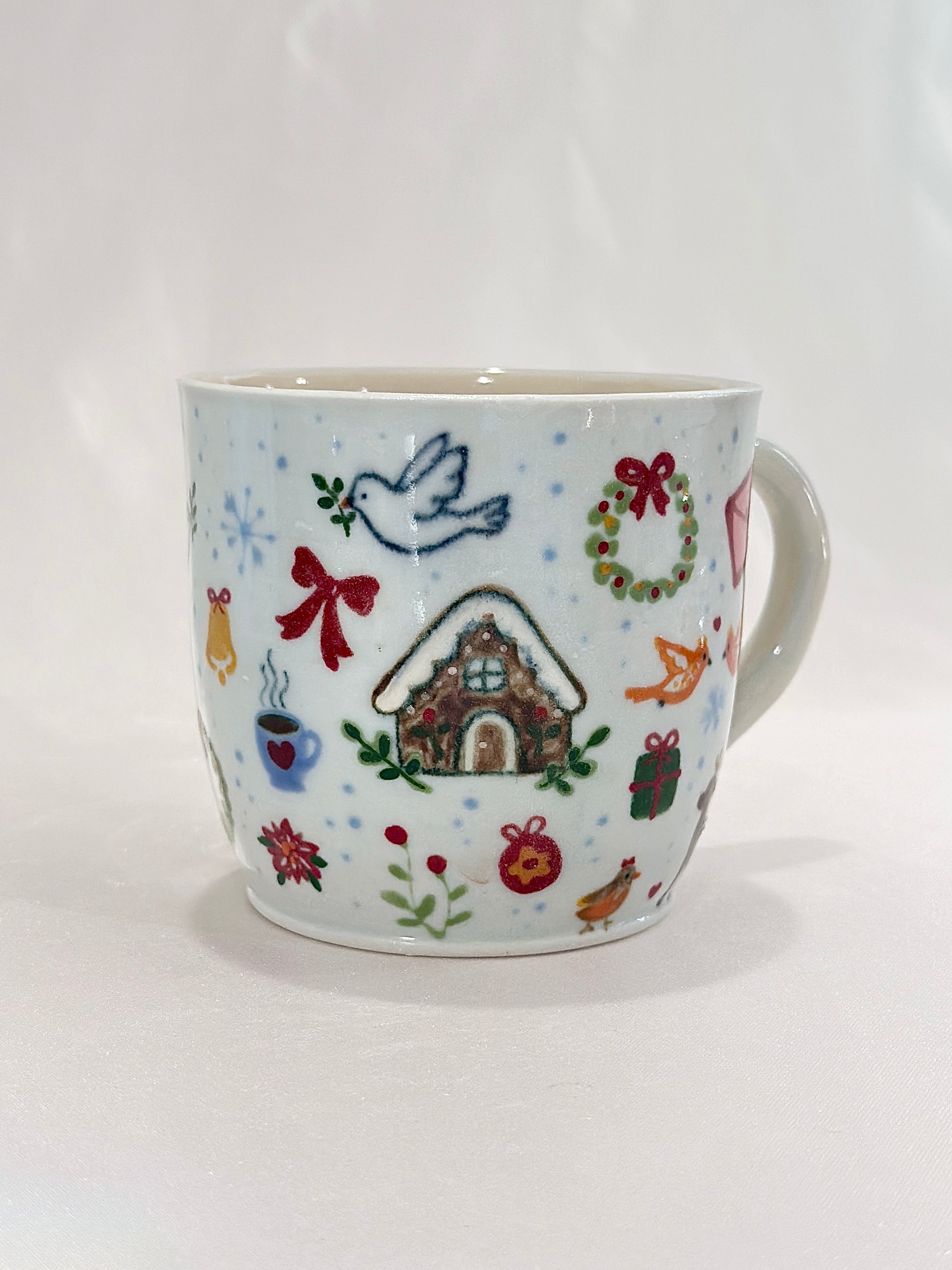 Little forest animals, gifts, wreaths, letters, and festive touches wrap gently around this mug. The artwork feels like stepping into a cozy storybook cottage, filled with warmth and cheer. A sweet companion for the holiday season and the quiet winter days that follow🎄